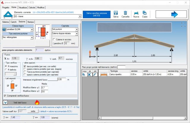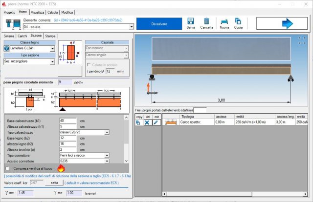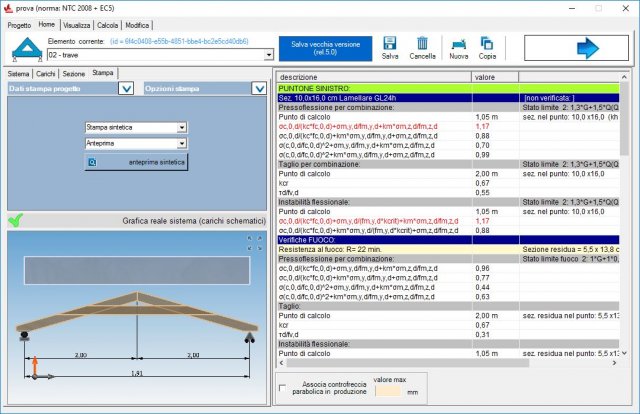 È così possibile elaborare travi con qualsivoglia tipo di carico, in tutte le combinazioni richieste, analizzandone le tensioni punto per punto (in particolare per travi sagomate o centinate) e ricavandone velocemente le verifiche tensionali, deformazionali e al fuoco.