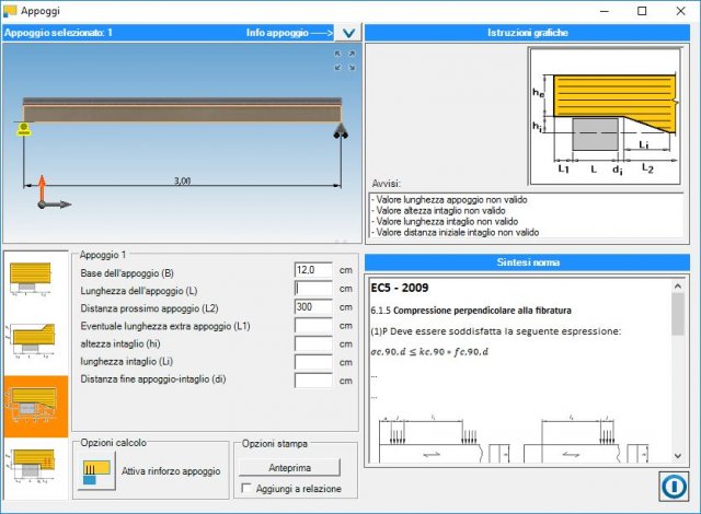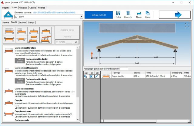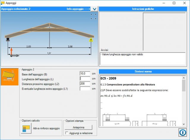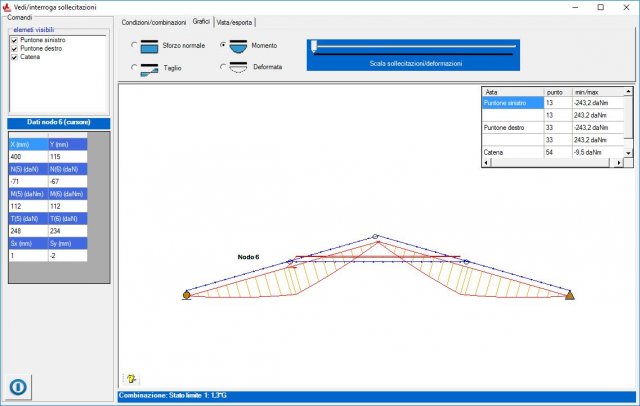 È anche possibile all’interno del programma editare sollecitazioni e tensioni e verificare alcuni aspetti caratteristici, quali le tensioni agli appoggi e, per le capriate, gli ancoraggi nodali caratteristici (catena-puntone, monaco-puntone).